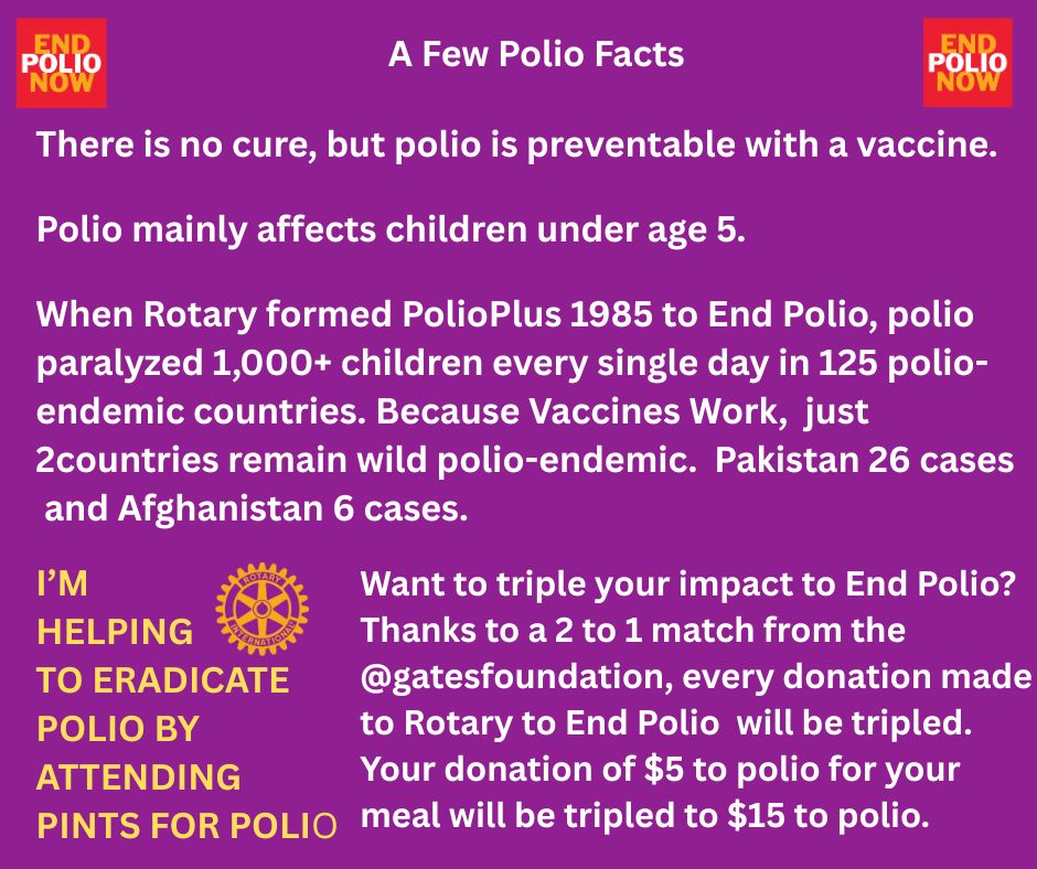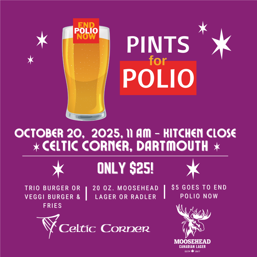 Join us for Pints for Polio, a fundraiser organized by the Rotary Clubs of HRM in support of the End Polio Now campaign.