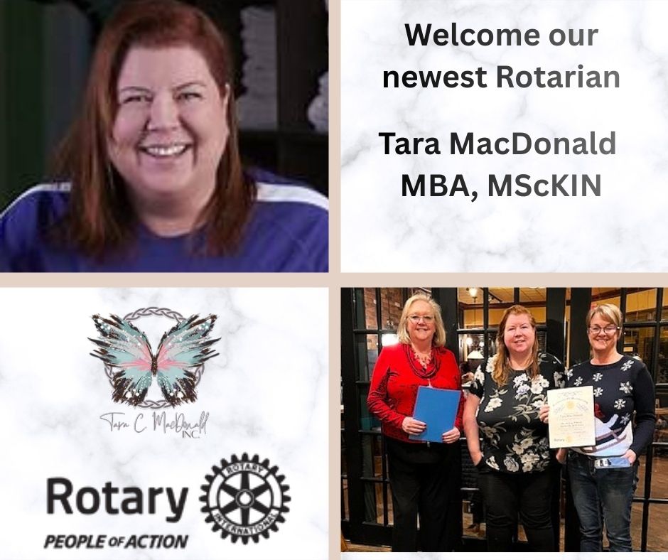 Tara MacDonald - New Rotarian![]() Please join us in welcoming Tara MacDonald, MBA, MSc KIN to the Rotary Club of Sackville and Area. Tara brings, along with a successful business career, a community-oriented background and knows and shows Rotary’s motto, Service Above Self. A lifelong learner, author, coach, and mentor, she is passionate about giving back and making a meaningful difference through service. We are excited that Tara has chosen to become a Rotarian, and to do so with our Club. Welcome to Rotary, Tara! We look forward to serving our community together.
